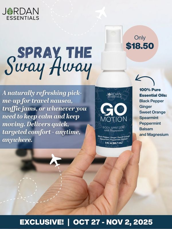The Go Motion Body Spritzer with Magnesium is light, clean, and calming — made with pure Ginger + Black Pepper + Spearmint + Balsam + Sweet Orange + Peppermint essential oils for natural relief.